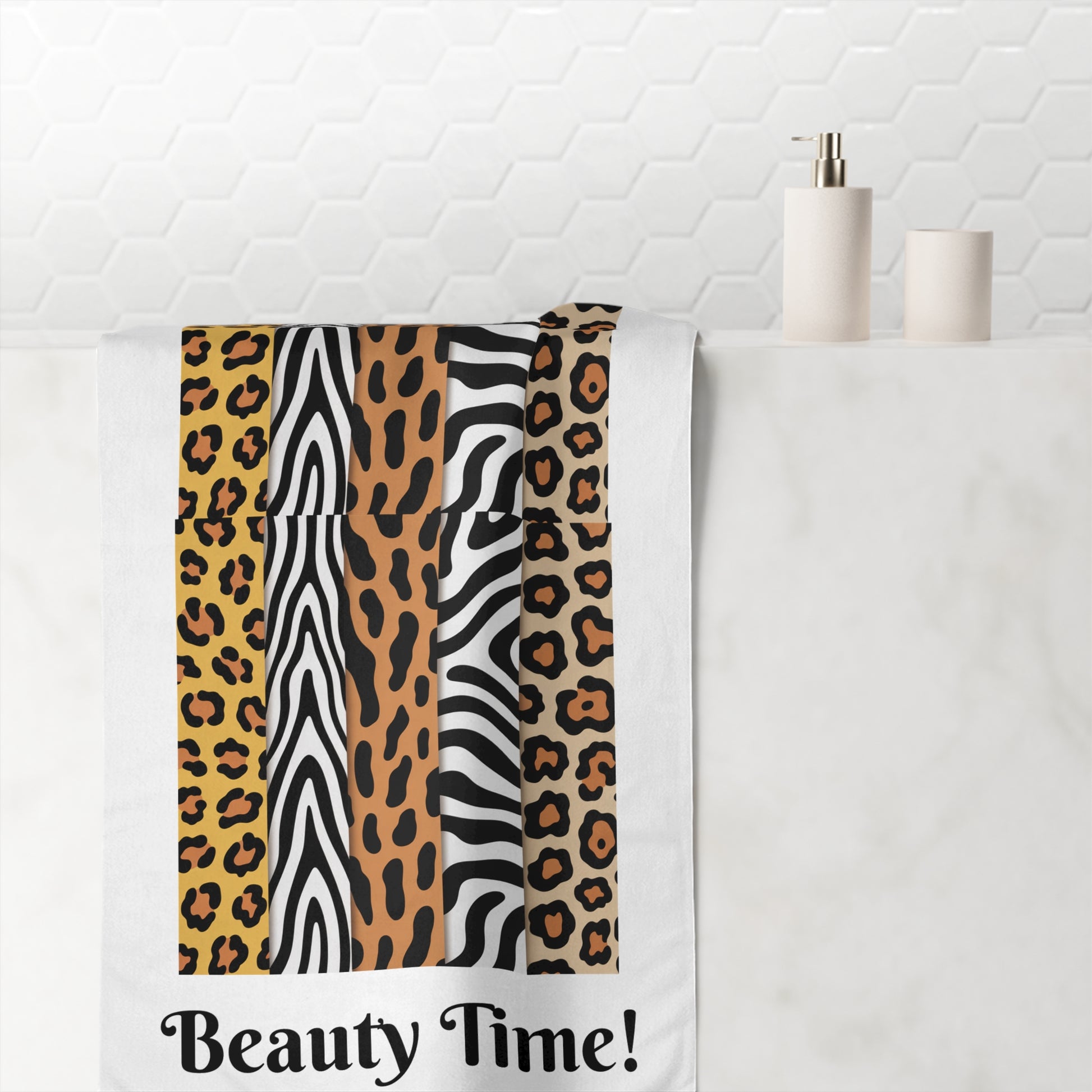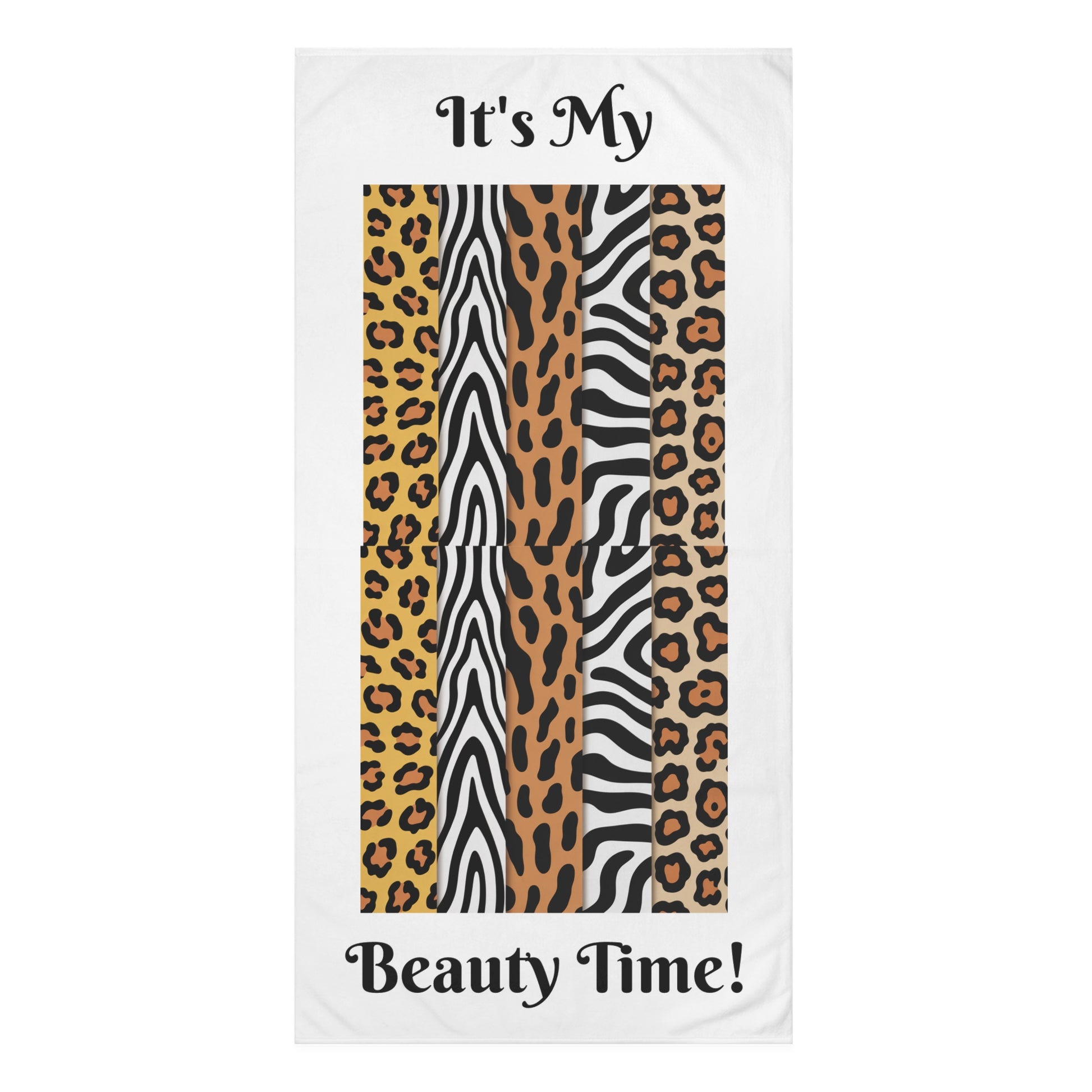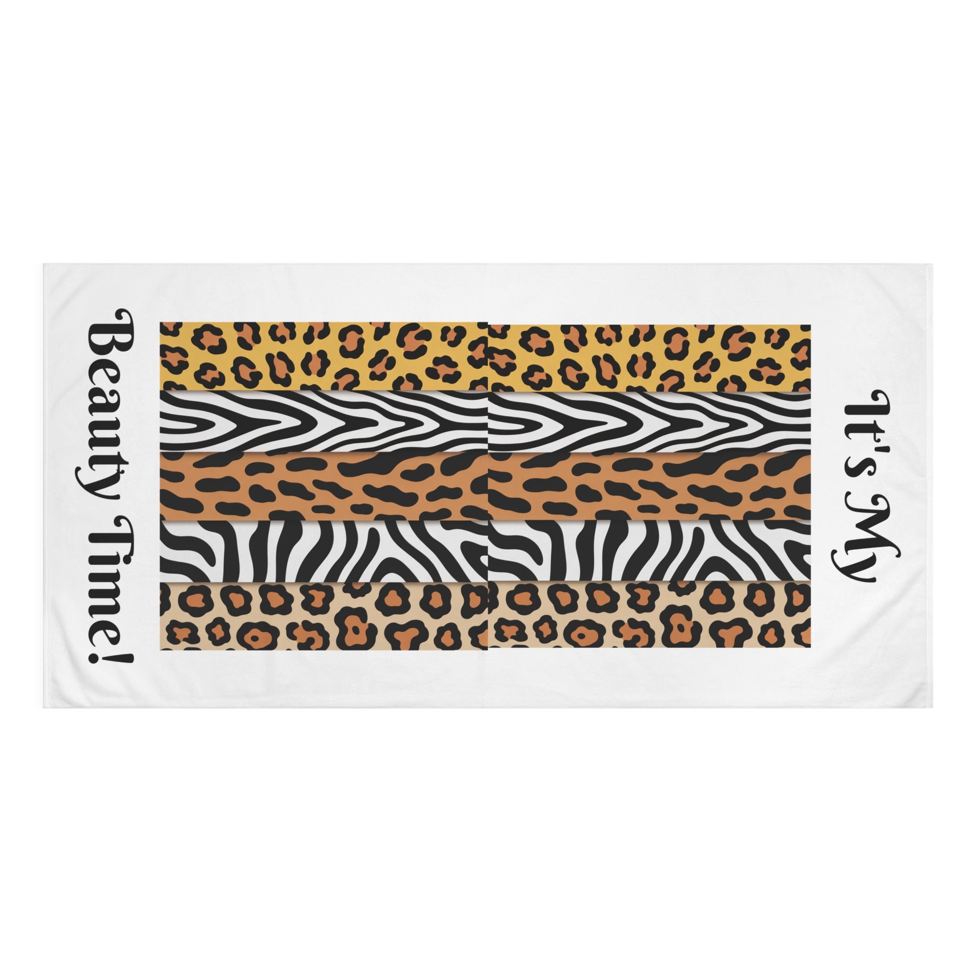 Elevate your relaxation game with It's My Beauty Time! ~ Mink Cotton Towel with safari animal prints. Designed to bring a splash of exotica to your everyday shower, drying your lover's body, beauty care, and post workout recovery. An eloquent essential for guest, travel, the sauna, and gym sessions. The beautiful patterns are mood enhancing. Simply a "winetastic" luxury towel gift for birthdays, childbirth, wellness, and other special occasions. The back side is solid white.