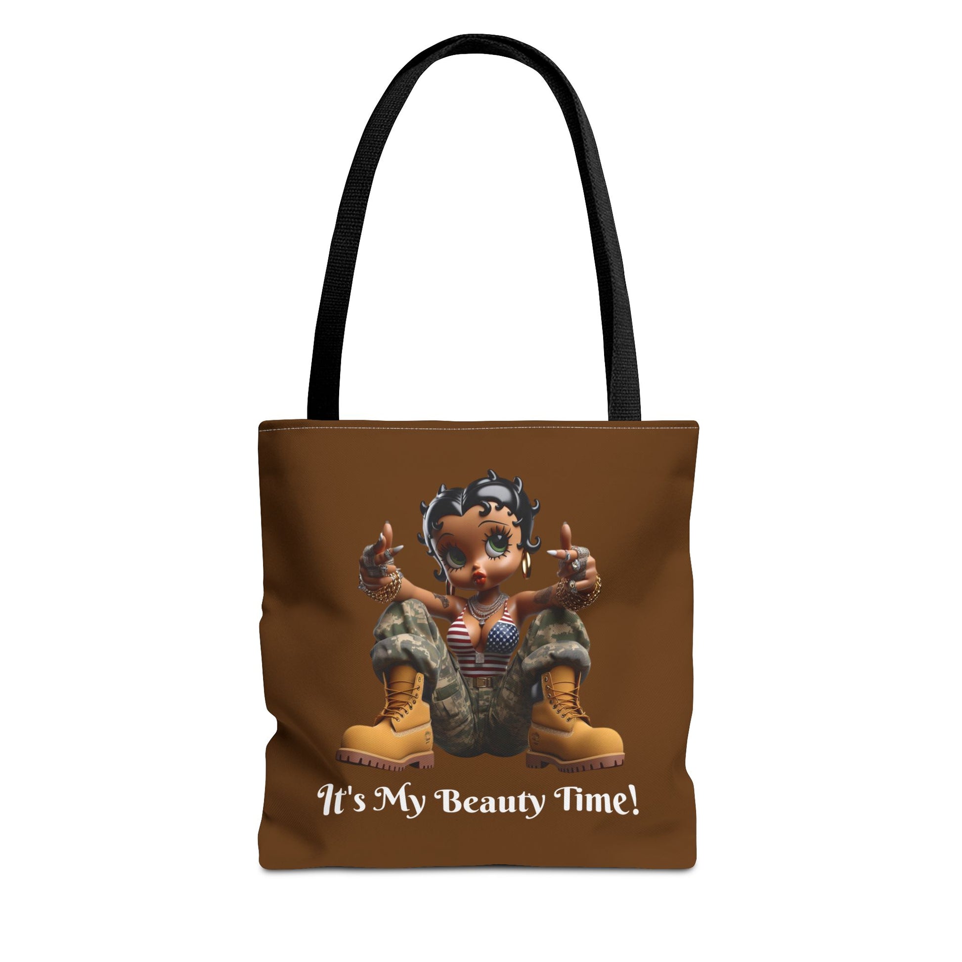 Patriotic Betty Boop Brown Tote Bag - Military Appreciation - Unique Shoulder Bag for Shopping, Travel, Work - Stylish Canvas Tote, Fun Cartoon Design, Gift for
